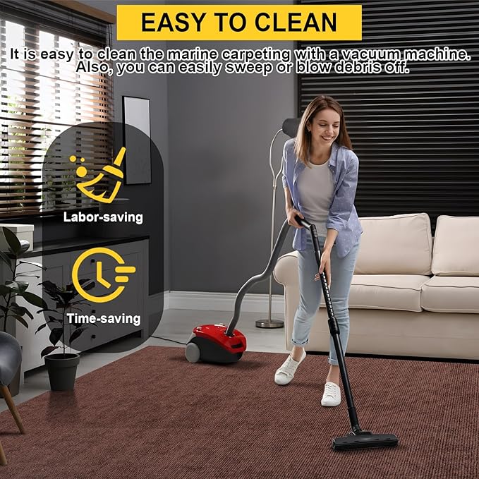 - Easy to Clean: With its innovative waterproof TPE backing, our carpet not only protects your floors or yacht deck but also simplifies cleaning.It is easy to clean the marine carpeting with a vacuum machine. Also, you can easily sweep or blow debris off. For stubborn stains, you just clean them with a rag or a carpet cleaner.