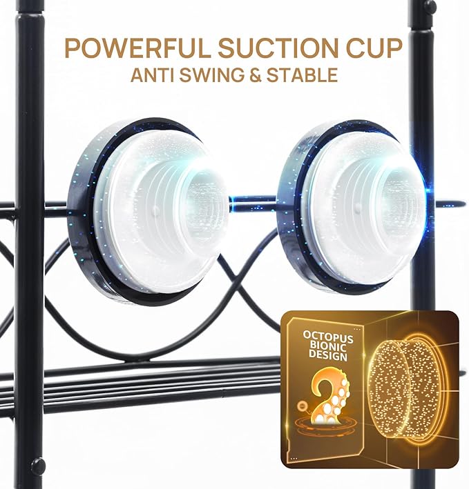 LEVERLOC Over The Door Shower Caddy, Shower Hanging Organizer Sturdy Rust Proof Bathroom Shelves with Strong Suction Cup and Reliable Hooks, Bath Basket Storage Rack, Metal Black