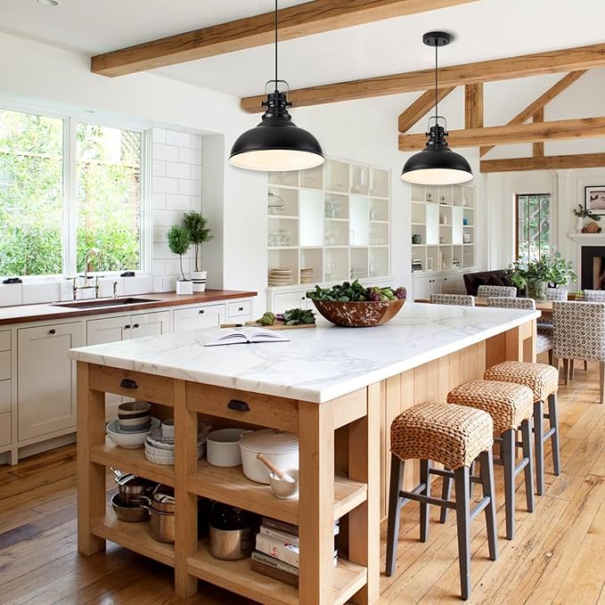 - INDUSTRIAL & VINTAGE DESIGN: 2-Light Pendant lighting for kitchen island, Oil Rubbed Bronze Finish Featuring retro-style dome shade, this farmhouse pendant lighting for kitchen is made of sturdy metal construction in oil rubbed bronze finish and inner gold finish The island lighting fixtures hanging is ideal for home, dining room, kitchen island, warehouse, entryway, corridor, restaurant, cafe, bar, club, barn, working bench.Plus, it’s compatible with a dimmer switch, so you can set the ideal mood.