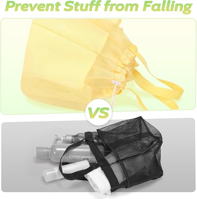 Mesh Shower Caddy Portable with Drawstring, Dorm Room Essentials for College Students Girls & Boys, Large Shower Bag for Camping,Swimming,Gym,Travel,Bathroom - Yellow