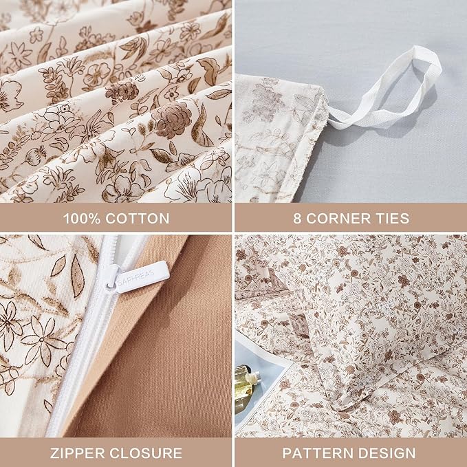 - 【Elegant Floral Design】: This SAPHREAS cotton duvet cover set features a soft, vintage-inspired floral pattern with warm brown and beige tones. The delicate flowers create a calming and cozy atmosphere. The set includes a zipped bedding cover, making it easy to use and maintain.