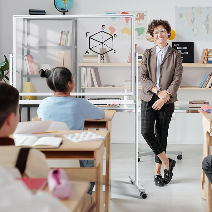 - 360° ROTATED & LOCKABLE - The mobile dry erase board comes with 4 durable universal wheels that support 360-degree rotation, allowing you to move easily whether on hard floors or carpets. Each wheel has a locking system to keep it stable while writing and wiping.