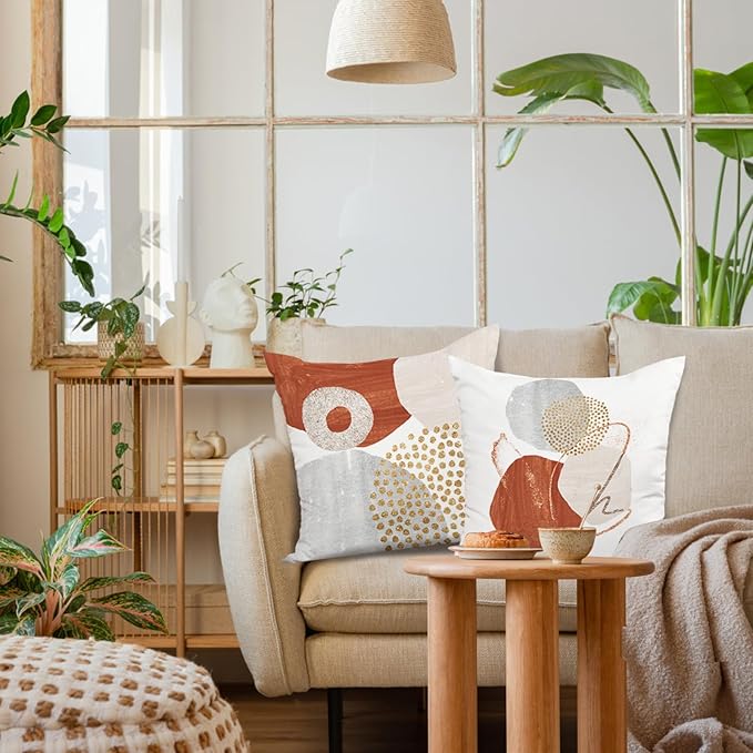 Jartinle Burnt Orange Abstract Throw Pillow Covers 18x18 Set of 4 Mid Century Modern Decorative Geometric Pillow Covers Minimalist for Sofa Couch Decor