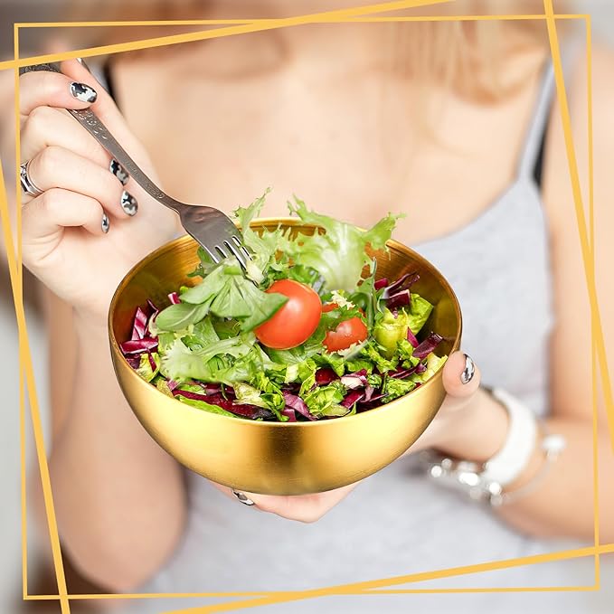 - Easy to Clean: our gold serving bowls are made with exquisite polishing and drawing processes, making the surface of the gold metal cereal bowl smooth and delicate, comfortable to touch, at the same time, its integrated roll is smooth and smooth, will not hurt the mouth and hands, making our stainless steel salad bowls smooth surface, no rough spots, so that stains are not easy to stay on our plates, easy to clean