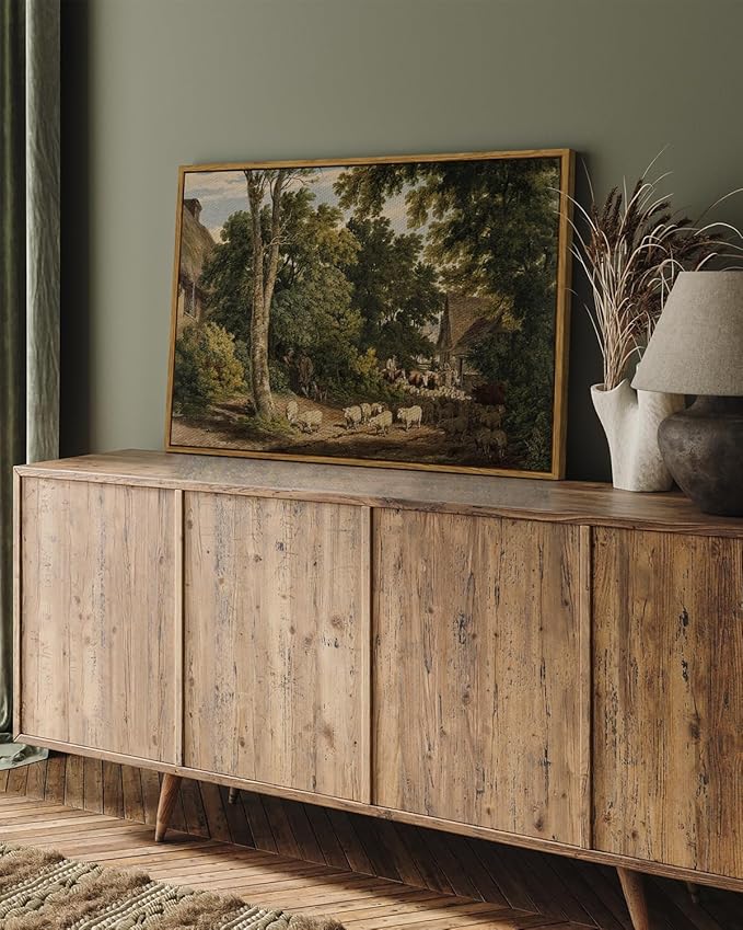 - Classical Wall Art Decor : This painting titled "Driving Home the Flock" is the work of 18th to 19th century English painter Robert Hills. This dark tone neutral painting prints can add more elements of classic and elegance to your space