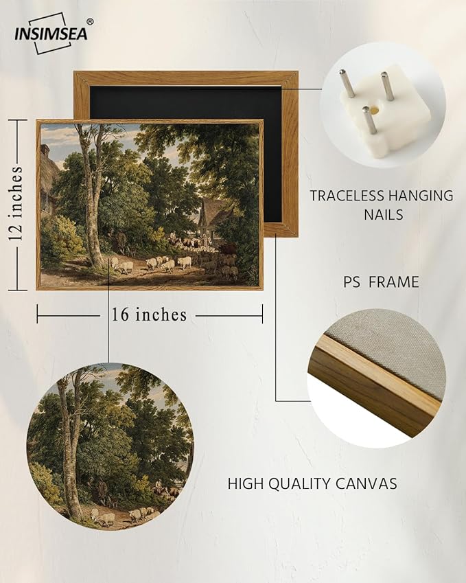 InSimSea Framed Canvas Wall Art Vintage Decor, Room Decor Classical Countryside Landscape Watercolor Painting Canvas Prints Wall Art for Living Room Badroom Farmhouse Bathroom, 12"x16"