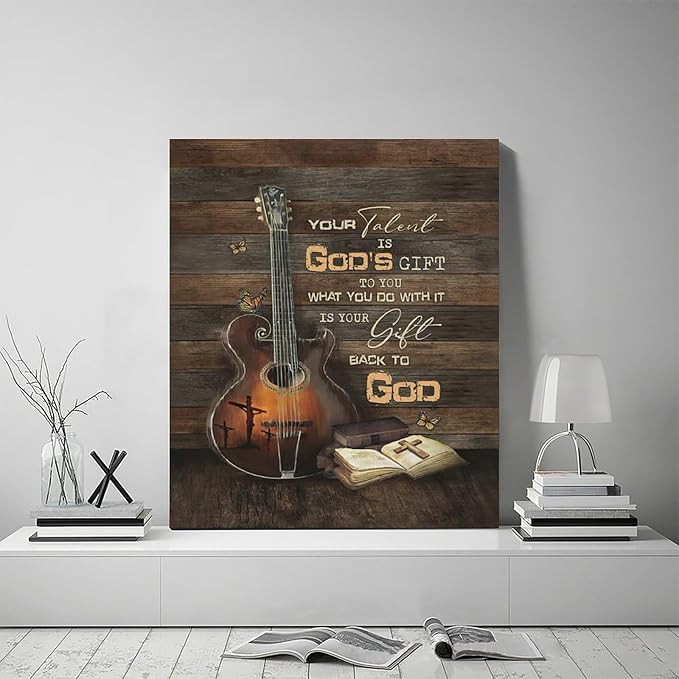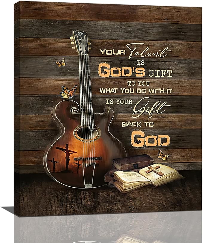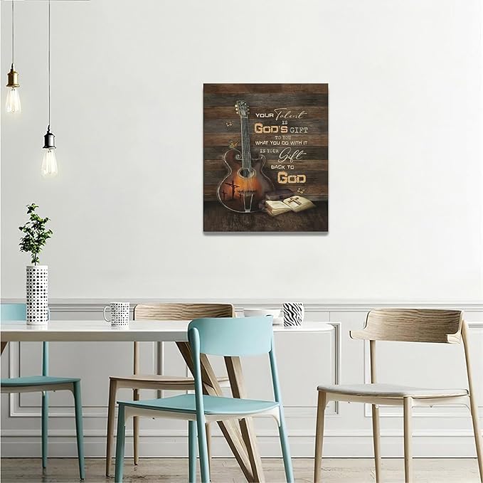 Christian Guitar Wall Art - Rock Music Guitar Wall Decor - Musical Pictures Artwork Inspirational Quotes Canvas Prints - Music Room Decor For Studio, Bedroom, Living Room, Bathroom - Framed 20"x24"
