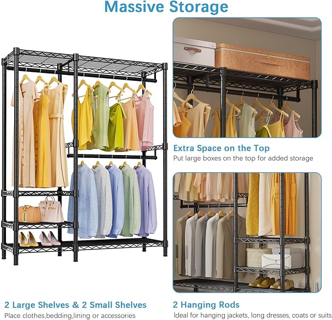 VIPEK V2i Garment Rack for Hanging Clothes, Portable Closet System with 4 Adjustable Shelves & 2 Hanging Rods, Heavy Duty Metal Clothes Rack, Freestanding Wardrobe Closet Rack, Max Load 700lbs