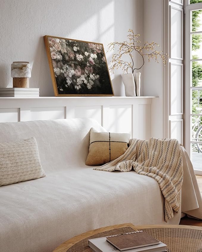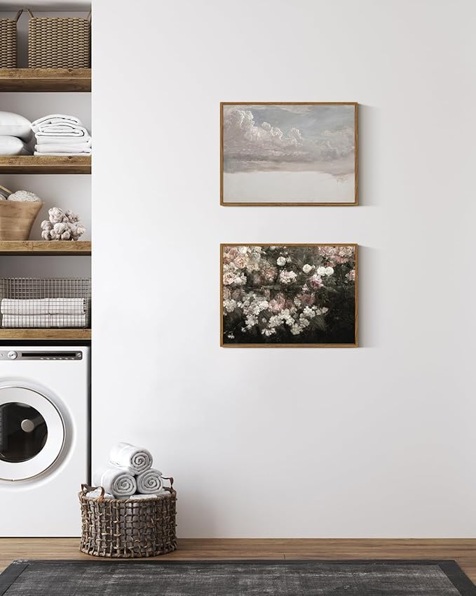 InSimSea Framed Canvas Wall Art Vintage Decor, Home Decor Garden in May Flower Wall Art Aesthetic Rustic Decoration for Bedroom Living Room Bathroom, 12"x16"