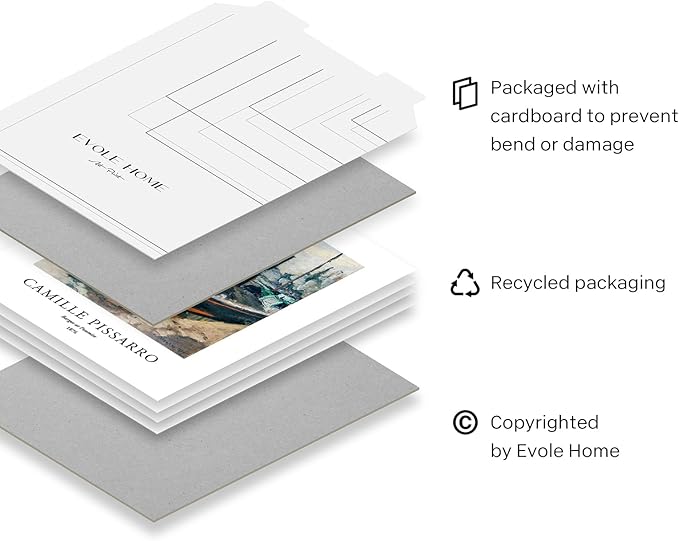 - Set of 4 Camilie Pissarro Prints: These 8x10" art prints are unframed, allowing you to choose frames that best complement your style and decor. The art prints are custom-trimmed with a white border, making them ready for framing and enhancing the overall aesthetic. The sizes listed are overall paper dimensions, including the white border.