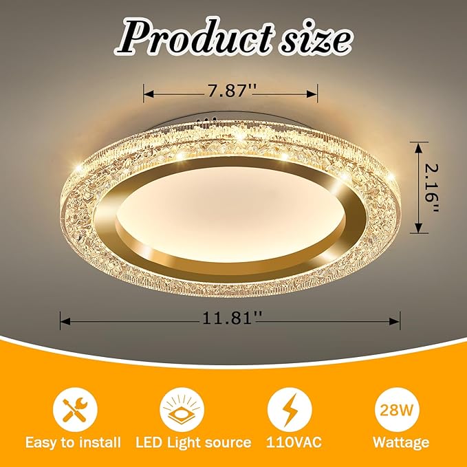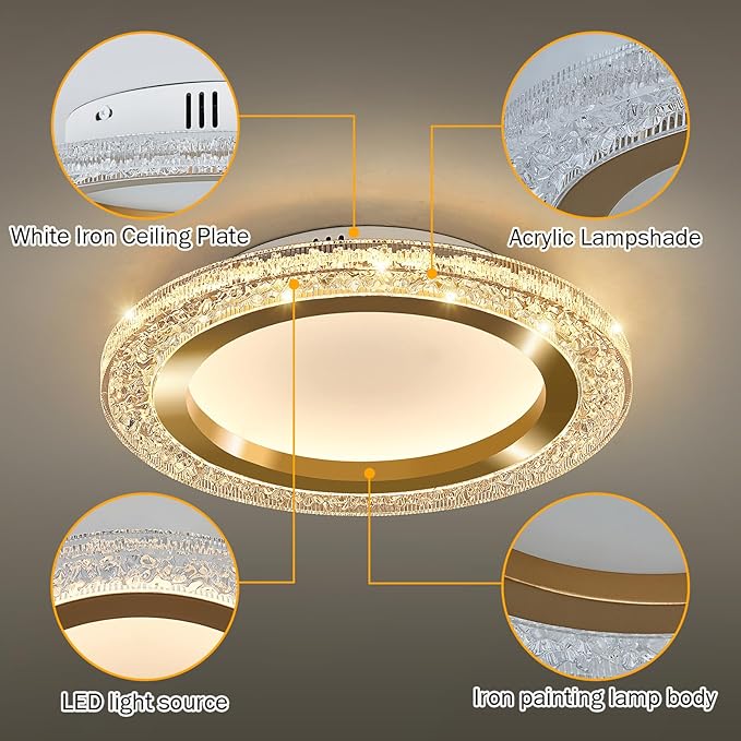 - Easy Installation & Widely Used: Hardware package and installation manual are included in the package, easy to install, only takes a few minutes to complete.This gold ceiling light is more suitable to be installed in small spaces, such as bedroom, closet, kitchen, entrance, porch, foyer, hallway, laundry room, office, staircase, balcony and so on.