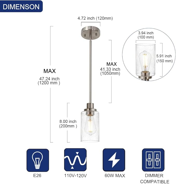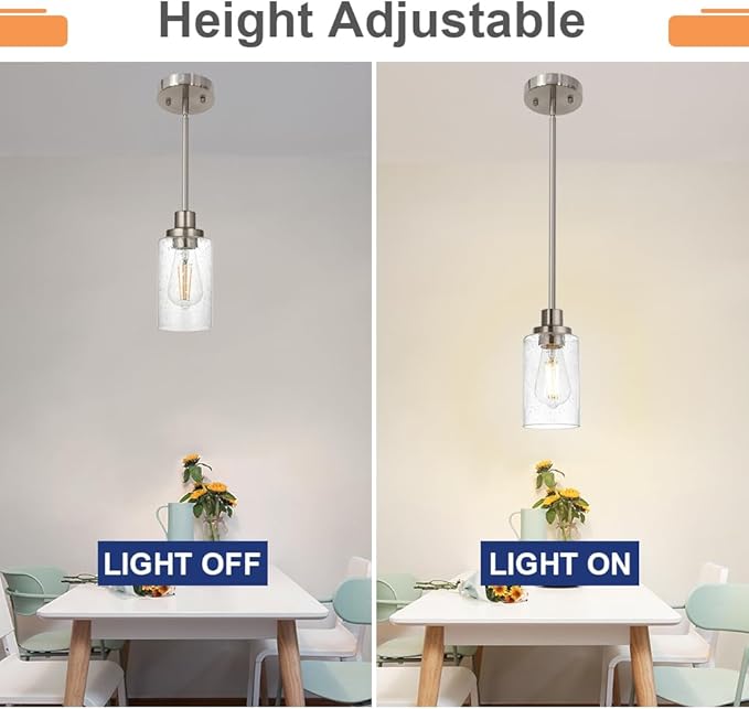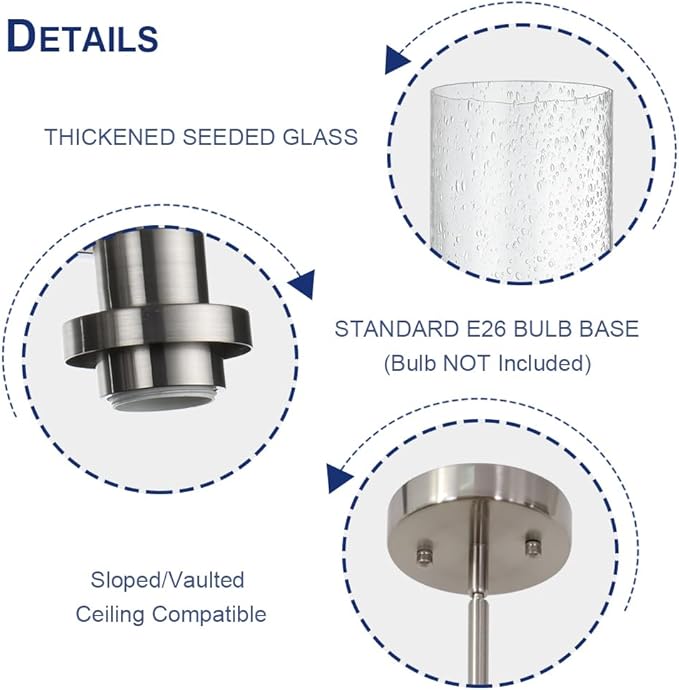 - Unique Design - Simple linear hanging kitchen lighting fixture with seeded glass cylinder shade. This home lighting fixture is great for farmhouse lighting or as a rustic chandelier.
