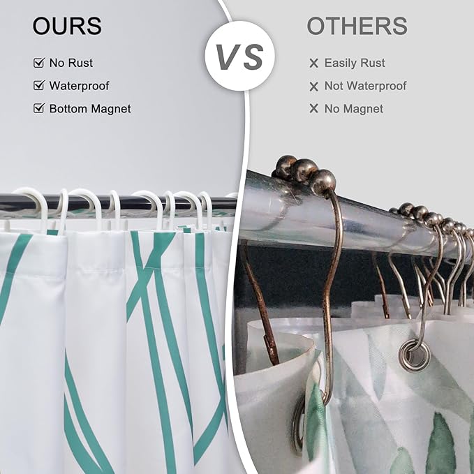 - EASY TO INSTALL -- This shower curtain set includes hooks for easy installation. The bottom of the shower curtain is designed with a 20g weighted hem, making it less likely to be lifted by the wind.