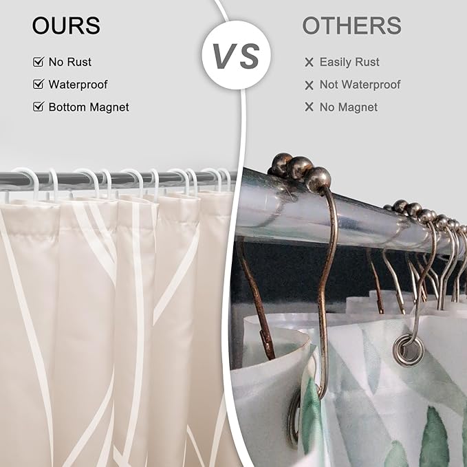 - EASY TO INSTALL -- This shower curtain set includes hooks for easy installation. The bottom of the shower curtain is designed with a 20g weighted hem, making it less likely to be lifted by the wind.