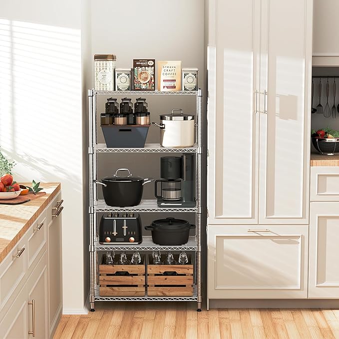 MZG 1750 lbs 5 Tier Storage Rack Metal Wire Shelving Unit, Storage Standing Household Shelf Organizer for Kitchen Pantry Closet Garage Basement Utility Room, Chrome 15.8" D x 45.3" W x 70.4" H