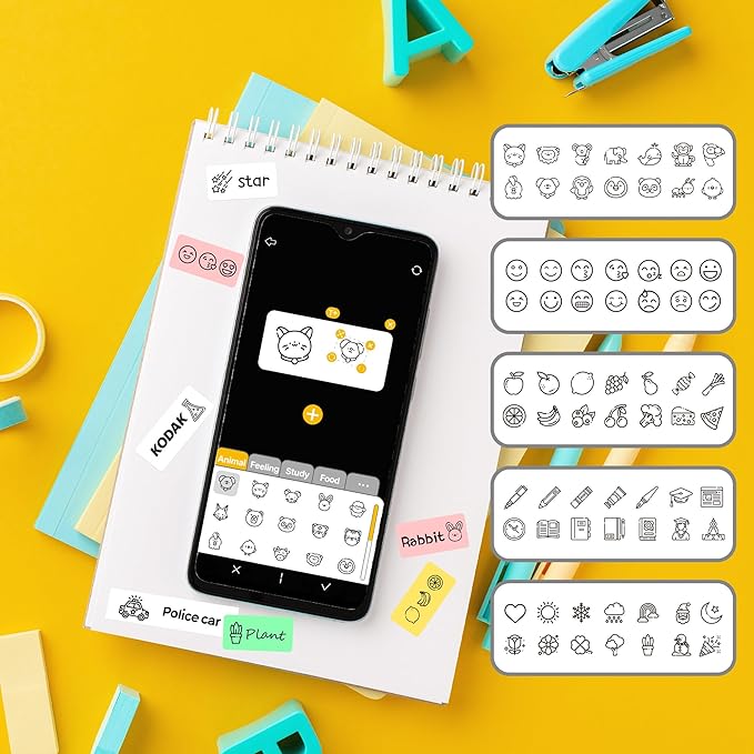 - [ Safe for use ] Unlike conventional label makers, KODAK Label printer has the cutting blade positioned inside, allowing for safe label cutting without the risk of hand injury. You don't need to worry even if your kids uses the label maker alone!