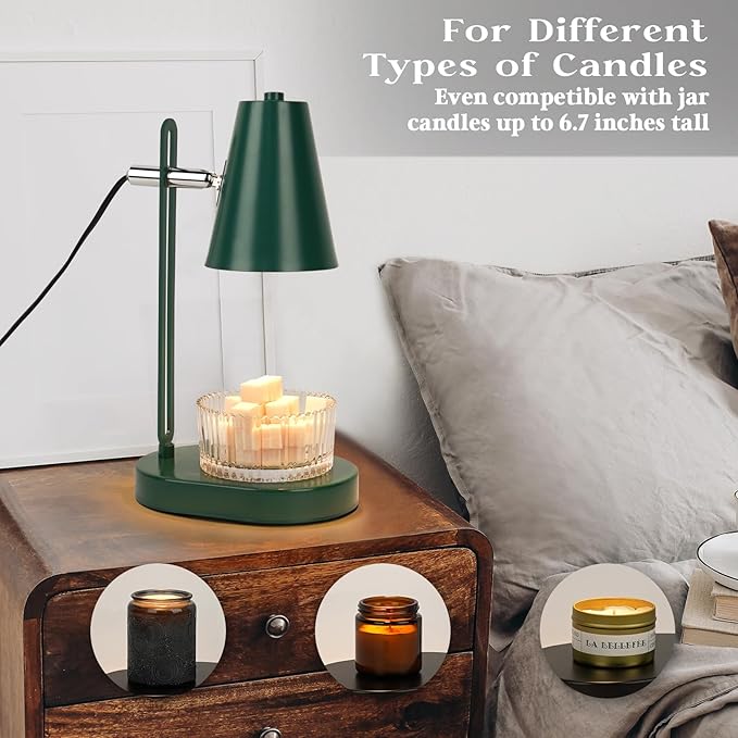 Green Candle Warmer Lamp with Timer, Adjustable Dimmable Candle Lamp Warmer, Candle Lamp with 2 Bulbs for Jar Candles & Scented Wax, Christmas Gifts, Candle Warming Lamp for Bedroom Living Room