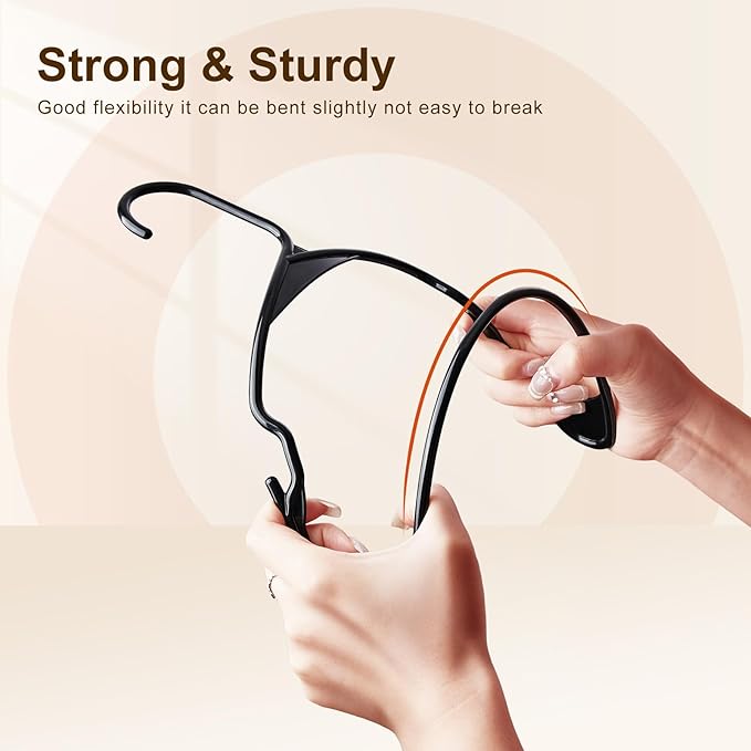 - Heavy Duty Clothes Hangers - Made from eco-friendly durable plastic, these clothing hangers will last for years. The neck and corners are reinforced to provide better support for your clothes, so it's stronger than other clothes hangers plastic, our closet hangers holds up to 7lbs like the light coat and light jacket also most of your clothes