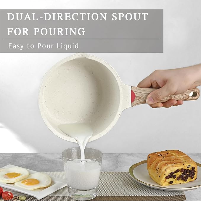 - 【3QT Non-Stick Milk Pot】Features PFOA/PFOS-free granite coating designed to require less oil with reduced smoke production. Includes lid and easy-release coating, suitable for heating milk, making porridge or preparing sauces.