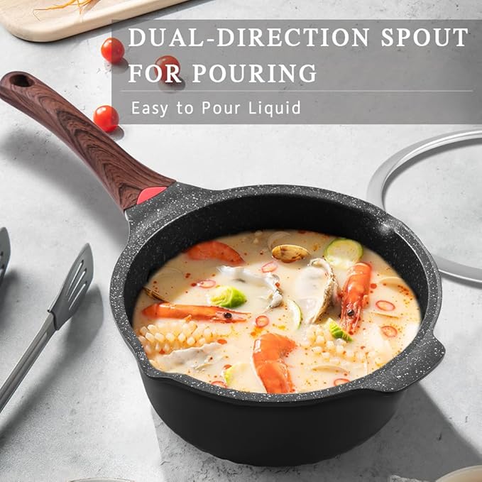 - 【4QT Non-Stick Milk Pot】Features PFOA/PFOS-free granite coating designed to require less oil with reduced smoke production. Includes lid and easy-release coating, suitable for heating milk, making porridge or preparing sauces.