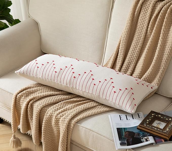 - 【High-quality construction】: Crafted with premium materials, Different thicknesses of yarn, warp and weft interlaced, rustic and elegant. These pillow covers are designed to last through countless movie nights and lazy afternoons