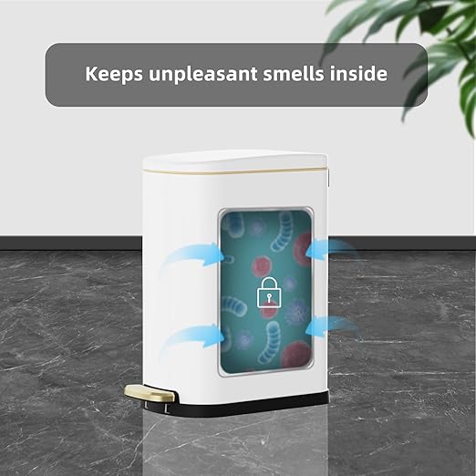 - 【COMPACT DESIGN】This 2.6 gallon step trash can is slim design, only 6.5 inch wide, the rectangular shape is the perfect size for inside cabinets, under counters, under sinks and other small spaces.