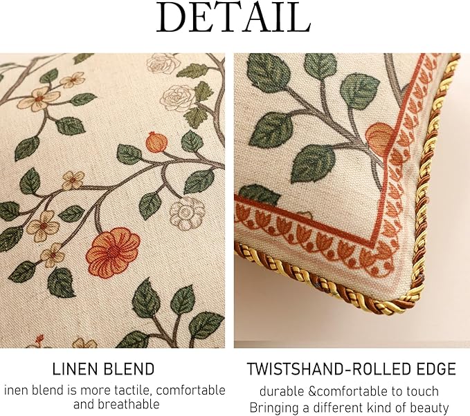 Design Linen Classic Throw Pillow Covers 12"x20" Pack of 2, French Farmhouse Rectangle Cushion Covers with Orange White Floral Pattern Decor Pillowcases for Bed,Living Room,Outdoor,Car