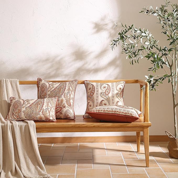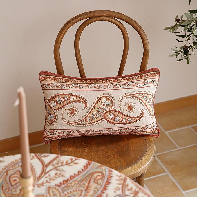 Design Linen Classic Vintage Throw Pillow Covers 12"x20" Pack of 2, Lumbar Cushion Covers with Orange Yellow Paisley Style Pattern Decoration Pillowcases for Bed,Living Room,Outdoor,Car