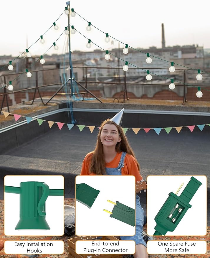 - End-to-end Connection: The G40 LED Christmas lights features an end-to-end connection design that can connect up to 28 strands to cover a large area. The Christmas lights outdoor can withstand extreme temperatures, rain, wind or wet weather. Unlike traditional ropes, they can be used indoors and outdoors for years