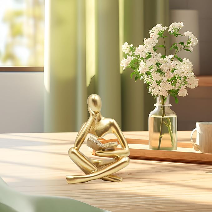 Gold Reading Women Statue, Thinker Sculptures, Abstract Art Ornament, Modern Aesthetic Figurine Decoration, Suitable for Home Living Room Bedroom Office Shelf Table Desk Bookshelf Decor