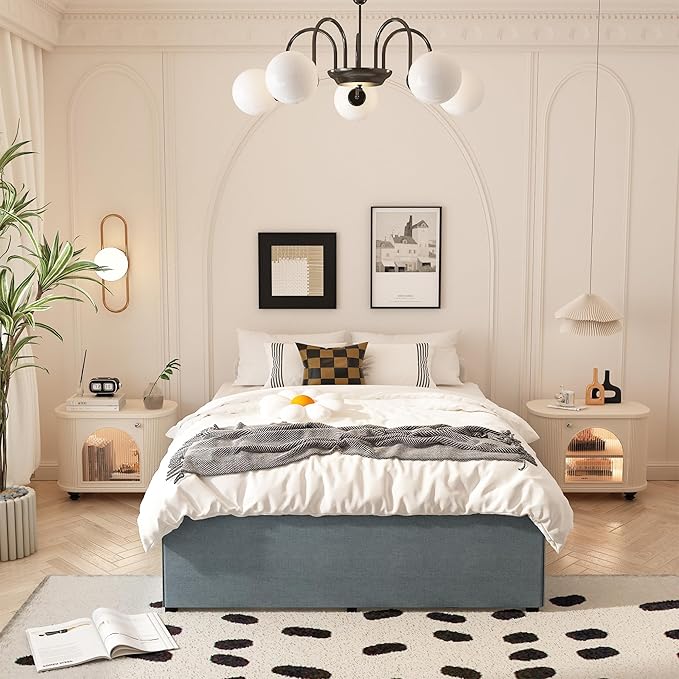 - Bed skirt Included: Bed frame king size with fabric cover, hide the under bed space and beautify the bedroom. The velcro design makes it easy to store items and prevents dust from getting under the bed.