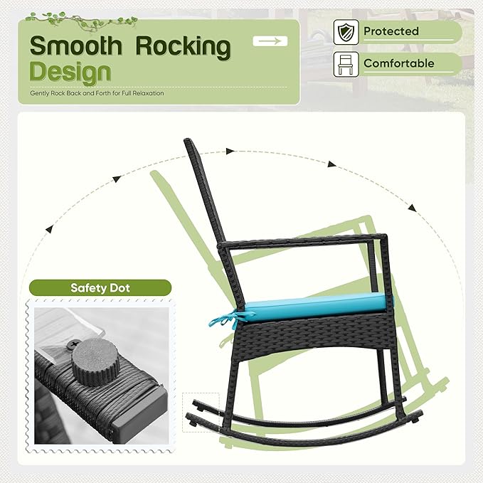 - - Premium Material - Outdoor rocking chair is made of premium PE rattan & strong steel, which provides better stability for 300lbs and features weather resistant.Suitable for long time outdoor using.