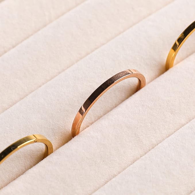 Frebeauty Small Jewelry Tray Set,Velvet Ring Organizer,Stackable Jewelry Organizer Tray,Mini Jewelry Drawer Organizer,4.92 x 3.74 x 0.9 Inches,7 Slots Ring Tray for Women(Set 2,Beige)