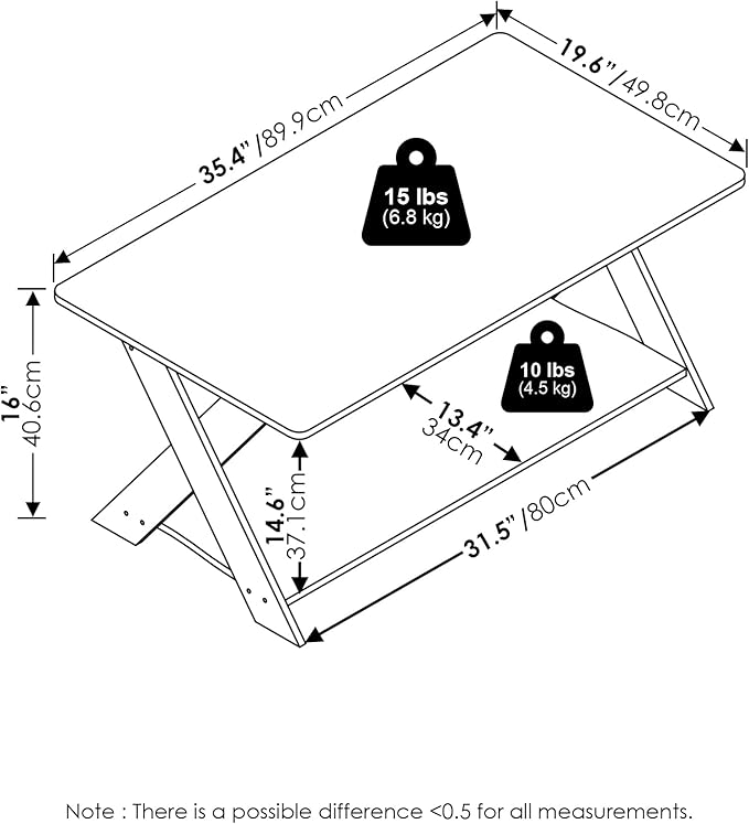 - Top shelf holds up to 20lbs, bottom shelf holds up 10lbs.