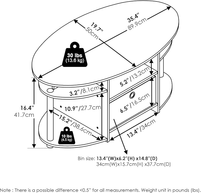 Furinno Jaya Simple Design Oval Coffee Table with Bin, White/White/Black