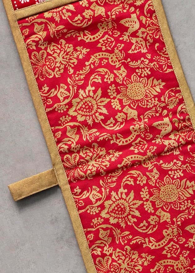 Maison d' Hermine Double Oven Mitt (7" x 35") 100% Cotton Heat Resistant BBQ Cooking Gloves with Loop for Thanksgiving Christmas Decorations Baking Cooking Barbeque Handling Hot Pan (Sofia)