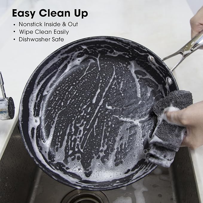 - Easy Clean Up : These nonstick pans are hand washing is more durable and saves time. Most messes will wipe clean easy. To preserve the nonstick pan, preferably wash your cookware with a soap and sponge