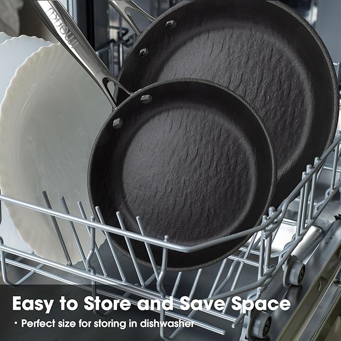 - Oven Safe & Perfect Gift - Cook with confidence as the nonstick frying pans can safely withstand temperatures up to 464°F. Oven-safe up to 320 degrees F. The ability to heat evenly in the oven and not easily deformed makes the food baked in the nonstick pan even more delicious. Will be an awesome idea for Valentines day gifts, Fathers day gifts, birthday gifts, Wedding gifts for couples, Housewarming gifts for new house