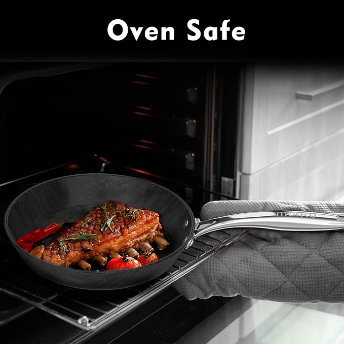 - Oven Safe & Perfect Gift - Cook with confidence as the nonstick frying pans can safely withstand temperatures up to 464°F. Oven-safe up to 320 degrees F. The ability to heat evenly in the oven and not easily deformed makes the food baked in the nonstick pan even more delicious. Will be an awesome idea for Valentines day gifts, Fathers day gifts, birthday gifts, Wedding gifts for couples, Housewarming gifts for new house
