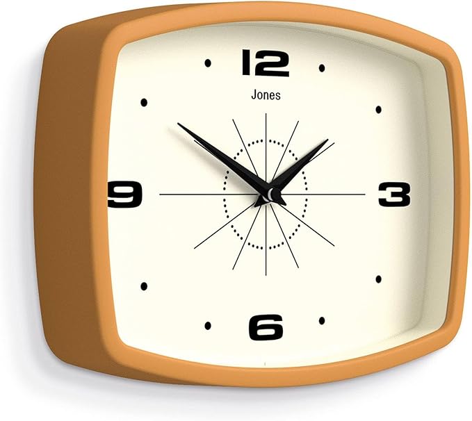 JONES CLOCKS® Movie Wall Clock | Rectangular Retro Clock | 10 inch | Mustard Yellow | Cool mid-Century Designer Look for Kitchen, Living Room or Office