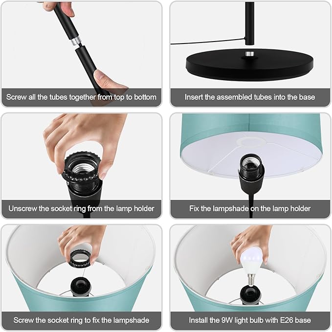 - 【Easy Assembly and premium quality】Made with black metal body and green linen lampshade, the standing floor lamp is simply designed and look good in any surroundings; With the 6lb sturdy base, this 58-inch (5ft) tall lamp stands steadily and won't tip over easily, which is safe for kids; Without tools required, you just need to screw all the parts together to finish the assembly of this standing lamp; PS. The assembly video is attached to the product page