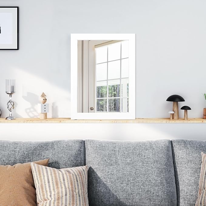 BOMINICA Rectangular Wall Mirror Framed Decorative Mirror 12” x 16” for Bathroom, Living Room, Vanity, White