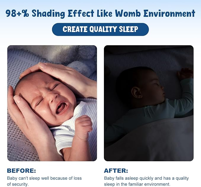 - Excellent Quality - This blackout tent for cribs and pack n plays is made of patented blackout fabric and 1200 holes/inch mosquito netting cover to let baby sleep safe and sound to play enegetically and grow healthy. 100% baby-safe material, non-toxic, harmless, soft and skin-friendly, breathable and durable.