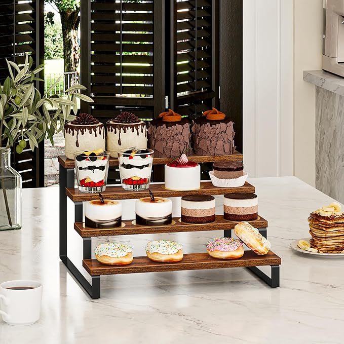 - 【Convenient Design】Maximize your counter space with the stepped design of this wooden display riser. Ideal for displaying toy figurines, party desserts, and cosmetics on the dresser. The raised tiers create an eye-catching feature for your items.