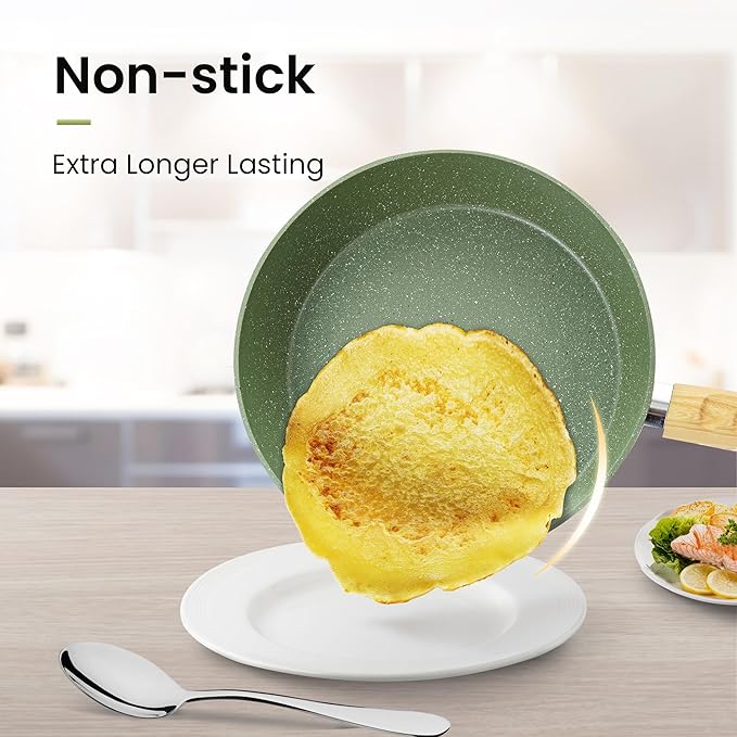 - 𝐓𝐡𝐨𝐮𝐠𝐡𝐭𝐟𝐮𝐥 𝐃𝐞𝐬𝐢𝐠𝐧 𝐟𝐨𝐫 𝐏𝐫𝐚𝐜𝐭𝐢𝐜𝐚𝐥𝐢𝐭𝐲: Anti-scald handles keep your hands safe, while the deeper pan shape allows for versatile cooking techniques, from stir-frying to simmering. Versatile cookware set non stick for various cooking methods