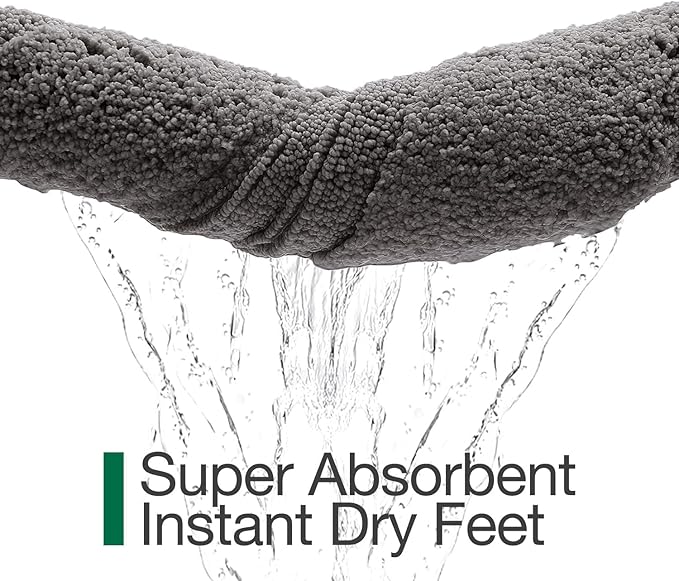 - Absorbent: Made from ultra-absorbent microfiber, our bath rug quickly soaks up moisture, keeping your feet dry and comfortable. Plush fibers enhance absorption while adding a soft, luxurious feel. Proper ventilation ensures lasting freshness
