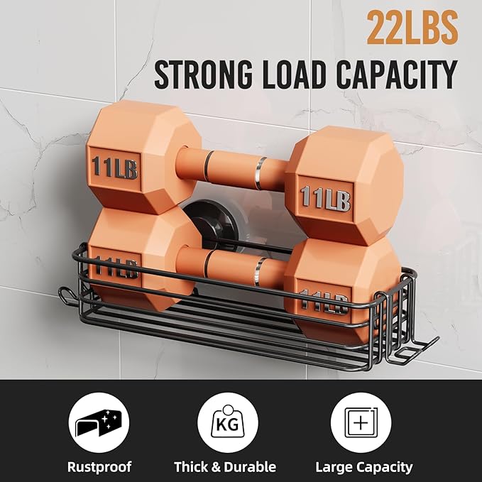 - Powerful & Durable Suction: TPE Suction Cup with bionic design of octopus tentacles and ABS plastic Hook ensures weather proof(-4°F-174°F), waterproof, and anti-aging; bathroom shower organizer with thicken plastic can hold up to 10 KG / 22 lbs and stick sturdy for years after installation without any concerns