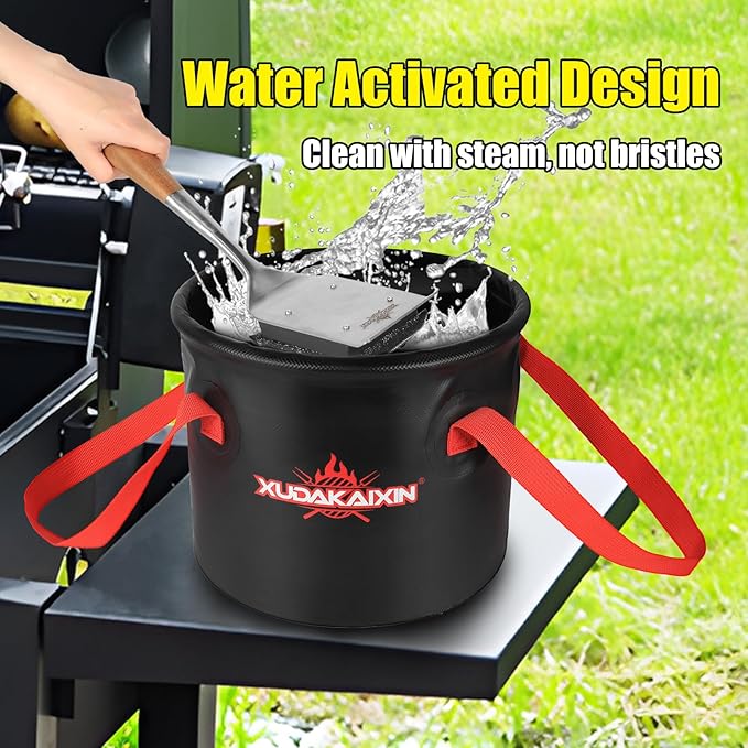 - 【Collapsible Water Bucket】Perfect Partner for Steam Grill Brush. It does everything you would need a small bucket to do, then folds neatly out of the way for easy storage when not in use.