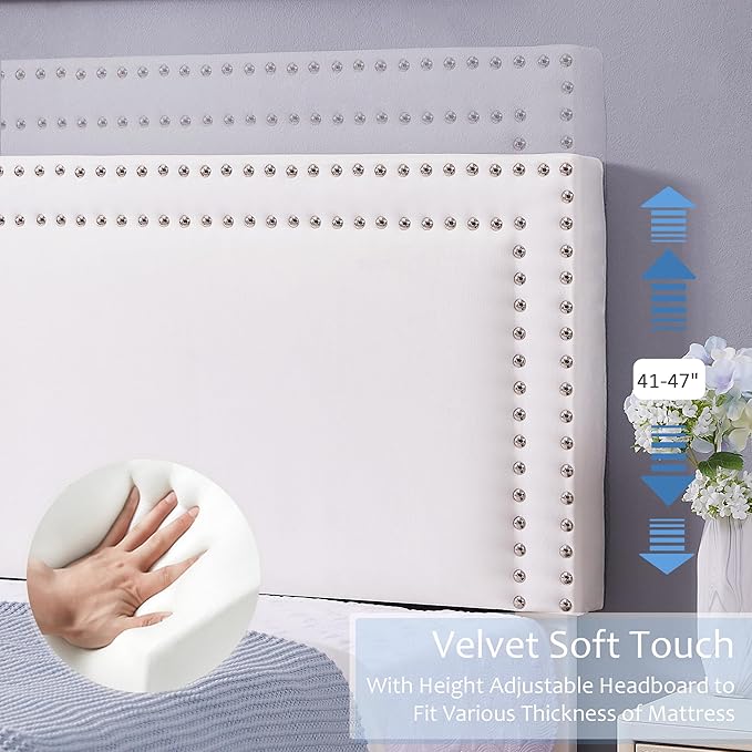 - [ADJUSTABLE HEIGHT] - The headboard comes with 4 height adjustable mounting positions from 41'' to 47'', suitable for any thickness and material mattresses. Under bed clearance provide extra storage space,also can clean easily.