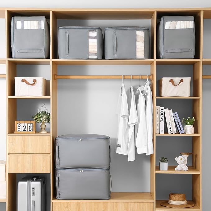 - VERSATILITY. The storage containers can be placed in the closet, wardrobe, under the bed or on the shelves for bedroom, living room, laundry room or college dorm room organization. In addition to clothing storage, these totes can also be used as moving boxes, laundry baskets or storage bins.
